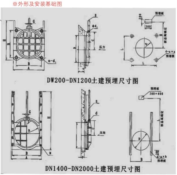 閘門采用明桿式,平面加筋型、附壁式安裝,適用于安裝在墻上的升桿式圓型孔口閘門,其平整的內(nèi)底與井壁緊密結(jié)合;它是由啟閉機帶動啟閉螺母轉(zhuǎn)動,在梯形螺紋作用下使絲桿帶動閘門門體上下運行,以達(dá)到截斷或疏通水流的作用。